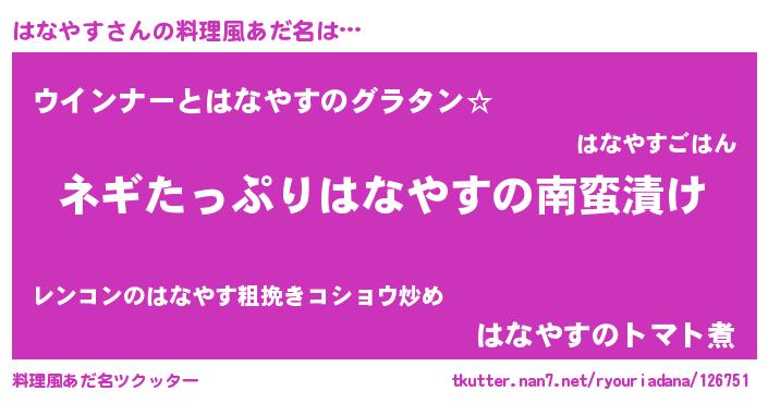 | 意味不明あだ名 | 『ペロリンはなやす』『自称はなやす』 |