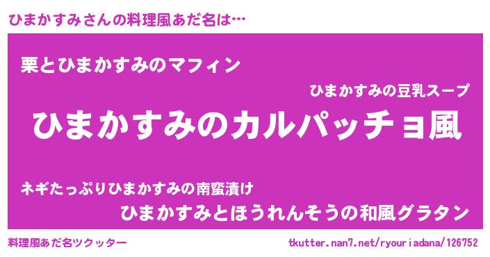 | 意味不明あだ名 | 『住所不定無職ひまかすみ(6歳)』 |
