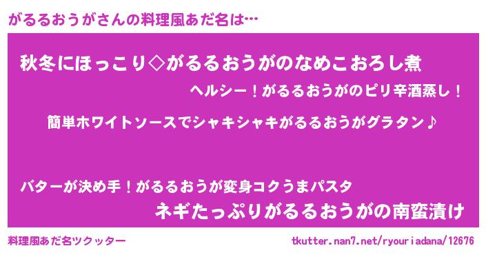 | ヘコむあだ名 | 『がるお』『がるもー』『なまこ酢』 |