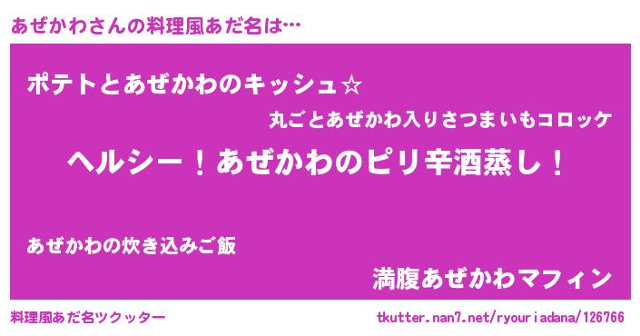 | ヒーロー風カッコイイあだ名 | 『究極戦士アゼカワ』『銀牙騎士アゼ』 |