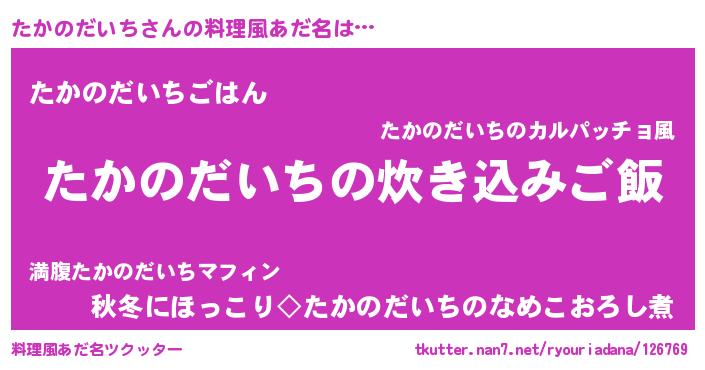 | 恥ずかしいあだ名 | 『たかちん』『プリティーたかのだいち』 |