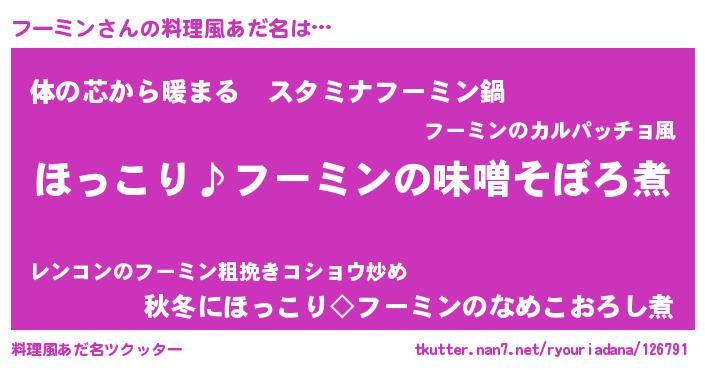 | 男性向けラノベタイトル風あだ名 | 『フーミンの憂鬱』『魔弾の王とフーミン』 |