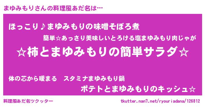 | 男性向けラノベタイトル風あだ名 | 『緋弾のマユミモリ』『まゆみもりの憂鬱』 |