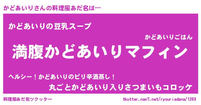 | ヘコむあだ名 | 『かどあいり(苦笑)』『かどを』 |