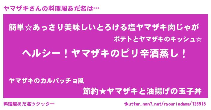 | 男性向けラノベタイトル風あだ名 | 『Re:ヤマザキから始める異世界生活』 |
