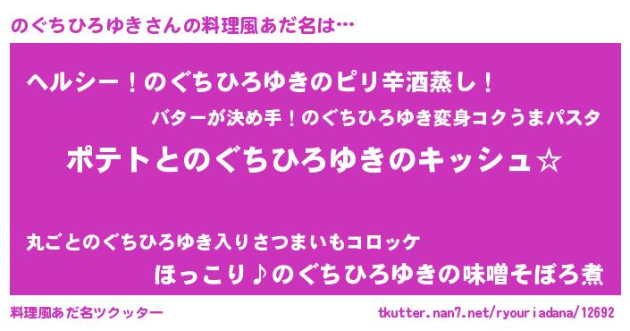 | 女子向けラノベタイトル風あだ名 | 『のぐちひろゆきの卵を拾いまして』 |