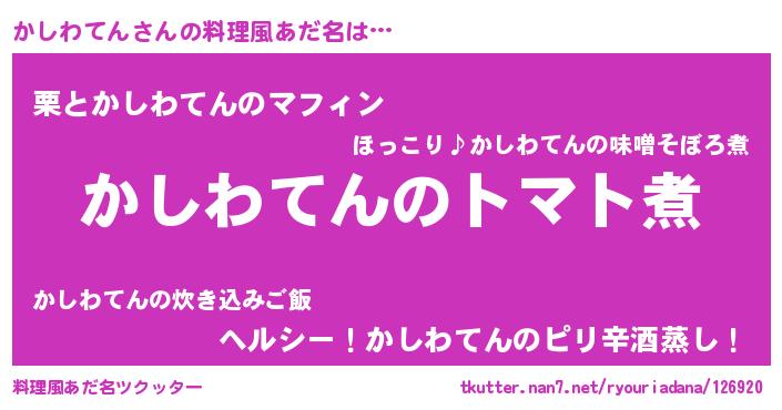 | ヒーロー風カッコイイあだ名 | 『正義の使者かしわてん』『黄金騎士カシ』 |