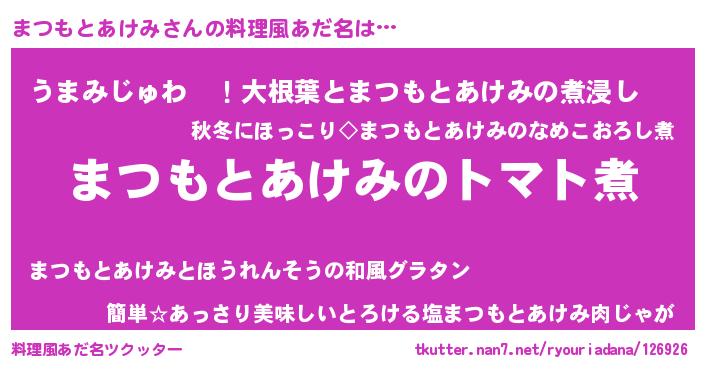 | 意味不明あだ名 | 『眠気覚ましガムまつもとあけみ味』 |