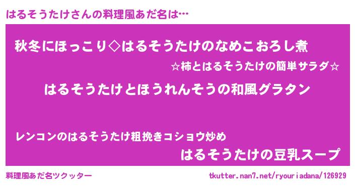 | 胡散臭い通販商品みたいなあだ名 | 『全米が絶賛したサプリメント…その名も「はるそうたけ」』 |