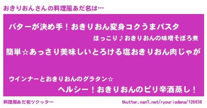 | ヘコむあだ名 | 『おきりおん(笑)』『おきもー』 |