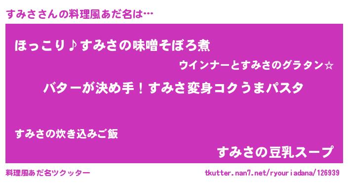 | 女子向けラノベタイトル風あだ名 | 『すみさ恋絵巻』『すみさは平凡を望む』 |