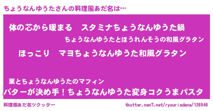 | 意味不明あだ名 | 『住所不定無職ちょうなんゆうた(81歳)』 |