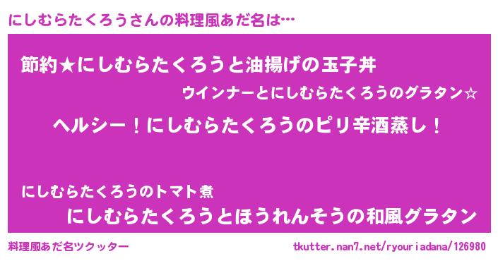 | 肩書あだ名 | 『にしむらたくろう閣下』 |