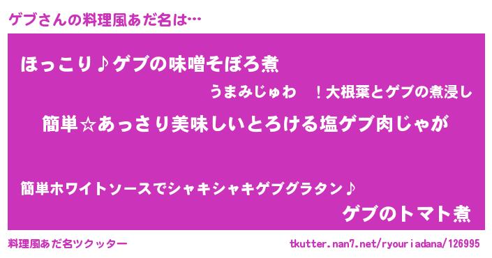 | ヒーロー風カッコイイあだ名 | 『ネオゲブ』『スーパーゲブ』 |