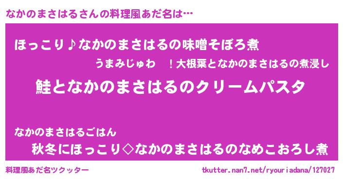 | 女子向けラノベタイトル風あだ名 | 『死神なかのまさはるの再婚』 |