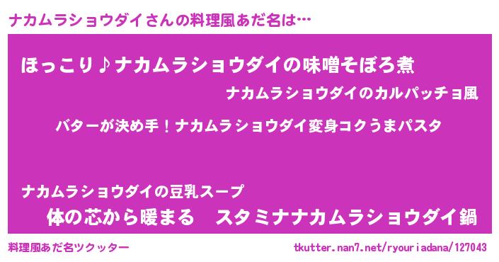 | ヒーロー風カッコイイあだ名 | 『慈愛の使者ナカムラショウダイ』 |