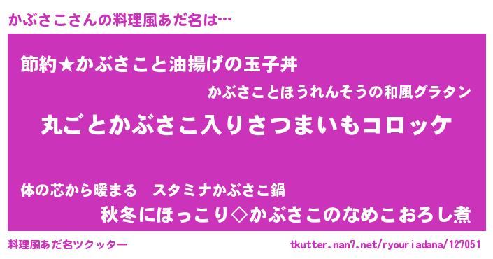 | 男性向けラノベタイトル風あだ名 | 『魔弾の王とかぶさこ』 |