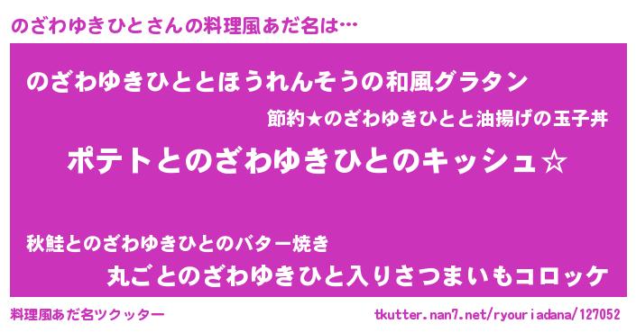 | ヘコむあだ名 | 『のざっぺ』『のざもー』『豆乳』 |
