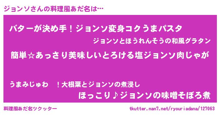 | ヒーロー風カッコイイあだ名 | 『ネオジョンソ』『友情の使者ジョンソ』 |