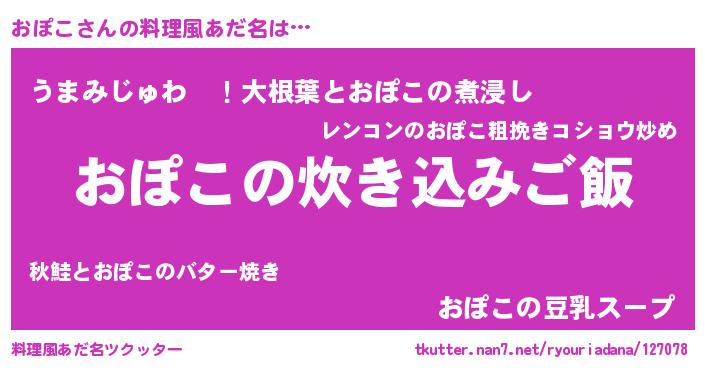 | ヒーロー風カッコイイあだ名 | 『ウルトラおぽこマン』『天弓騎士オポ』 |
