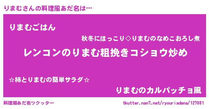 | 女子向けラノベタイトル風あだ名 | 『りまむなんてお断りですっ。』 |