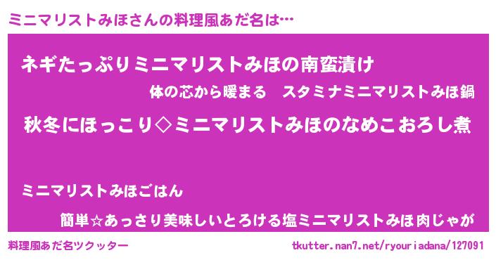 | 胡散臭い通販商品みたいなあだ名 | 『億万長者になれるブレスレット…その名も「ミニマリストみほ」』 |