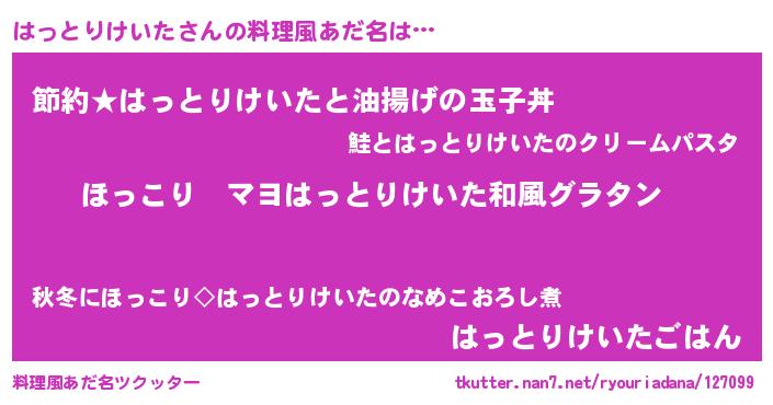 | 意味不明あだ名 | 『住所不定無職はっとりけいた(50歳)』 |