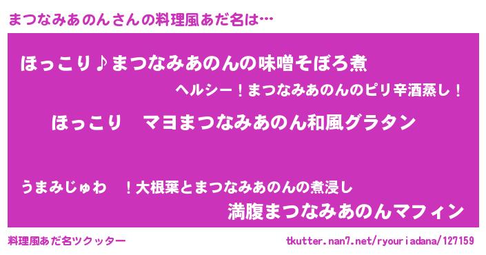 | ヘコむあだ名 | 『まつもー』『まつなみあのん(小並感)』 |