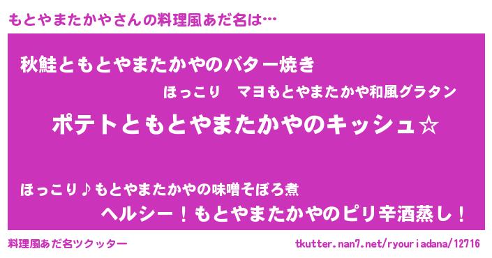 | 男性向けラノベタイトル風あだ名 | 『もとやまたかやの嫁は女の子じゃないと思った?』 |