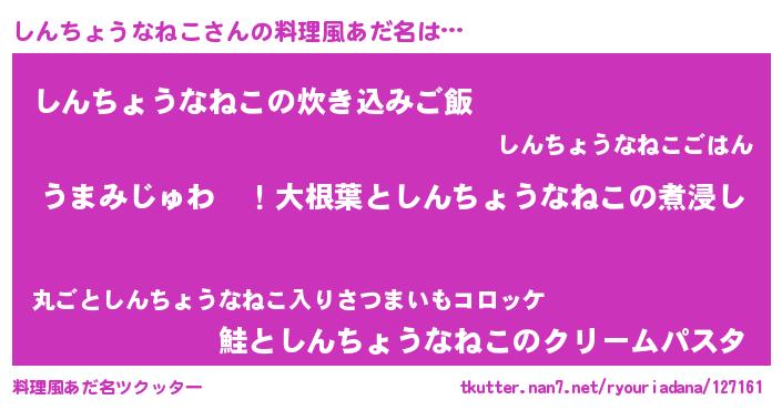 | 意味不明あだ名 | 『しんちょうなねこフォーエバー』 |