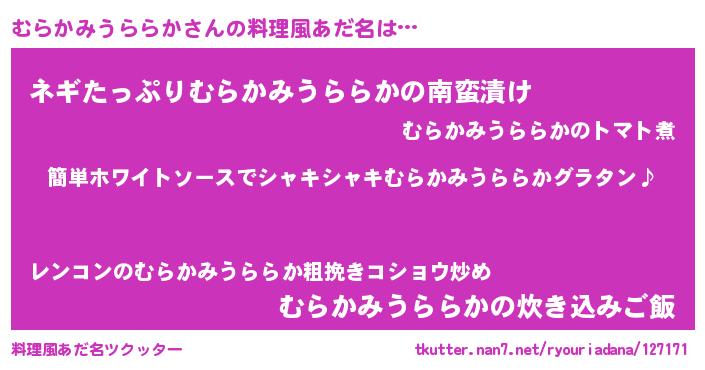 | ポケモン風あだ名 | 『ヒムラカミウララカ』『ムラチュウ』 |