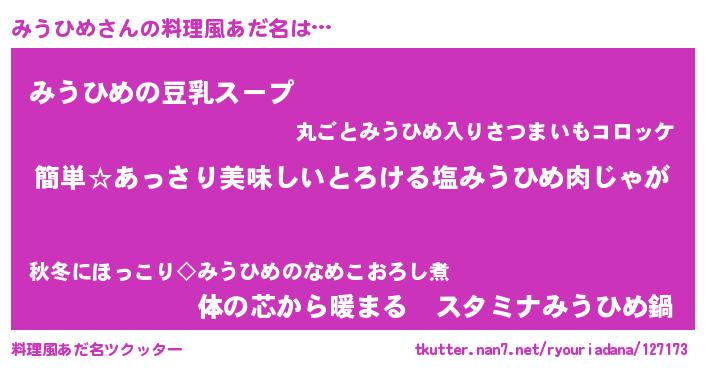 | 胡散臭い通販商品みたいなあだ名 | 『前代未聞の健康食品…その名も「みうひめ」』 |