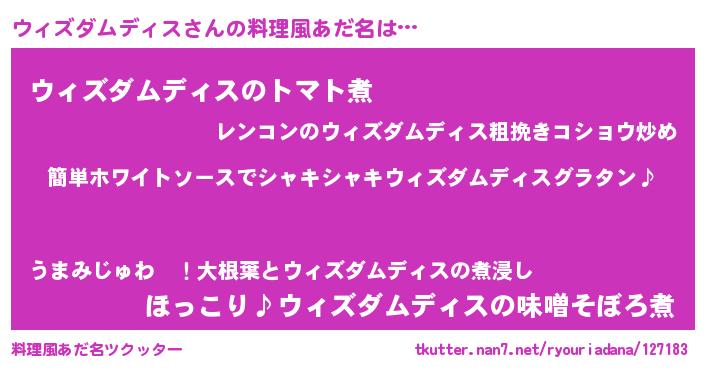 | 男性向けラノベタイトル風あだ名 | 『ウィズダムディスの嫁は女の子じゃないと思った?』 |