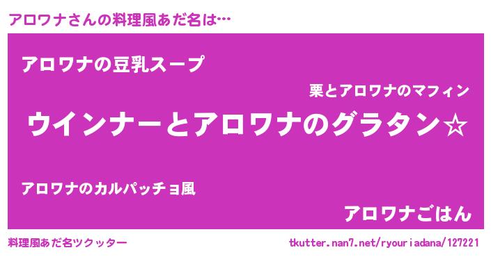 | ポケモン風あだ名 | 『アロワダネ』『ヒアロワナ』 |