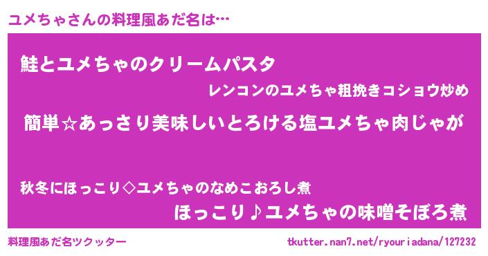 | 意味不明あだ名 | 『永久保存ユメちゃ』『ペロリンユメちゃ』 |
