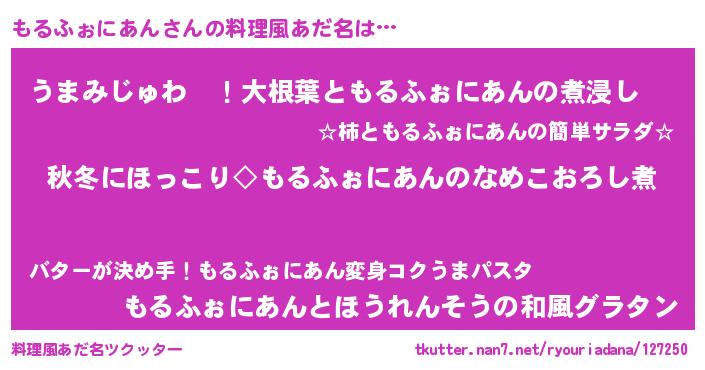 | 意味不明あだ名 | 『もるふぉにあんフォーエバー』 |
