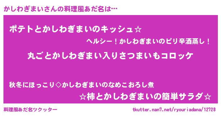 | 意味不明あだ名 | 『住所不定無職かしわぎまい(5歳)』 |