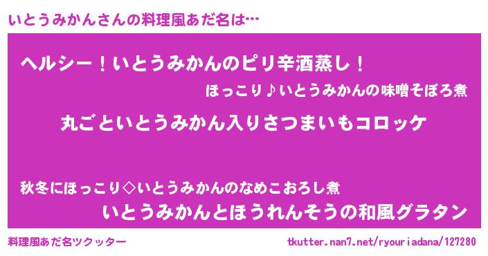 | 男性向けラノベタイトル風あだ名 | 『この素晴らしい世界にいとうみかんを!』 |