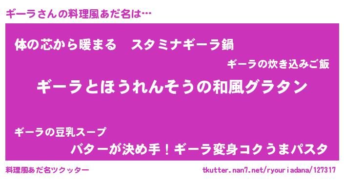 | ポケモン風あだ名 | 『ギーキング』『ギーラダネ』 |