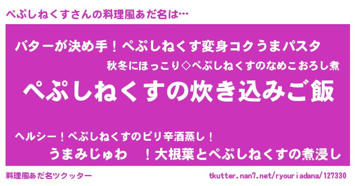 | 男性向けラノベタイトル風あだ名 | 『うちのぺぷしねくすが世界を掌握している!』 |