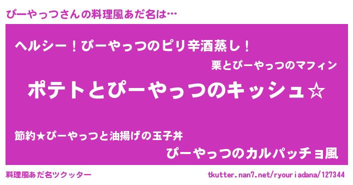 | 女子向けラノベタイトル風あだ名 | 『ぴーやっつの卵を拾いまして』 |