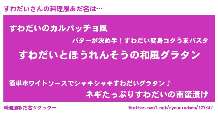 | 恥ずかしいあだ名 | 『プリティーすわだい』『スワリンリン』 |