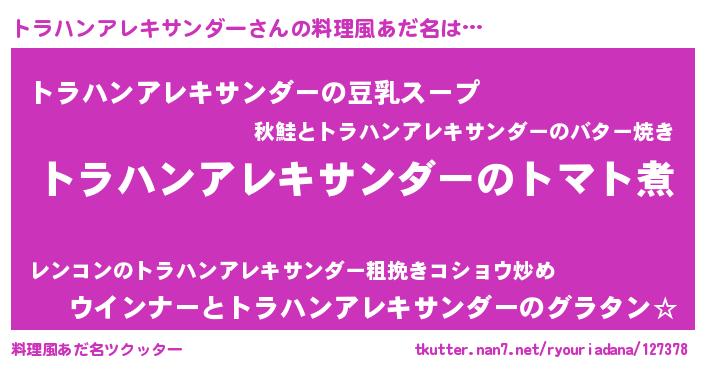 | ヒーロー風カッコイイあだ名 | 『正義の使者トラハンアレキサンダー』 |