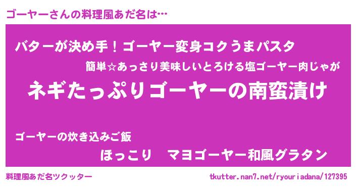 | 男性向けラノベタイトル風あだ名 | 『ゴーヤーアートオンライン』 |