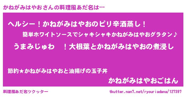 | 意味不明あだ名 | 『かねがみはやおフォーエバー』 |
