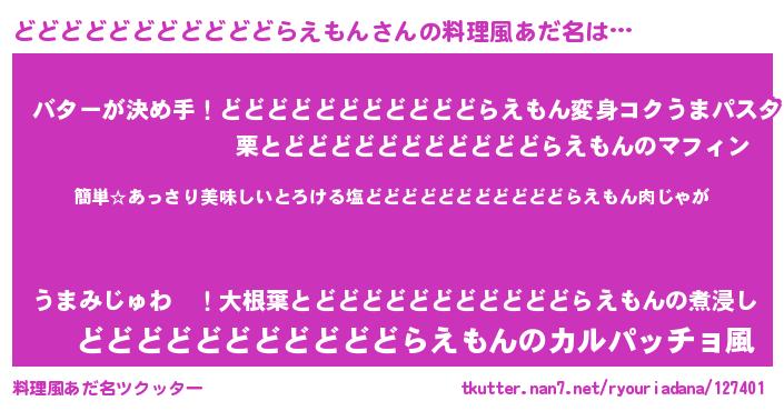 | 女子向けラノベタイトル風あだ名 | 『異世界でカフェどどどどどどどどどどどらえもんを開店しました。』 |