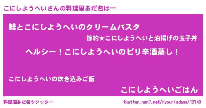 | 意味不明あだ名 | 『自称こにしようへい』 |