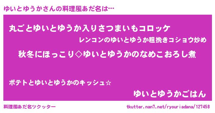 | 意味不明あだ名 | 『住所不定無職ゆいとゆうか(81歳)』 |
