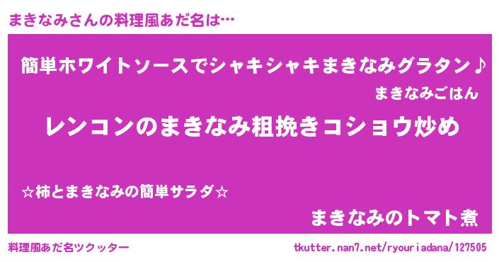 | 意味不明あだ名 | 『自称まきなみ』『たけのこ科まきなみ属』 |