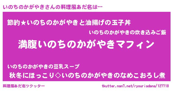 | 胡散臭い通販商品みたいなあだ名 | 『絶対に幸福をもたらす水素水…その名も「いのちのかがやき」』 |